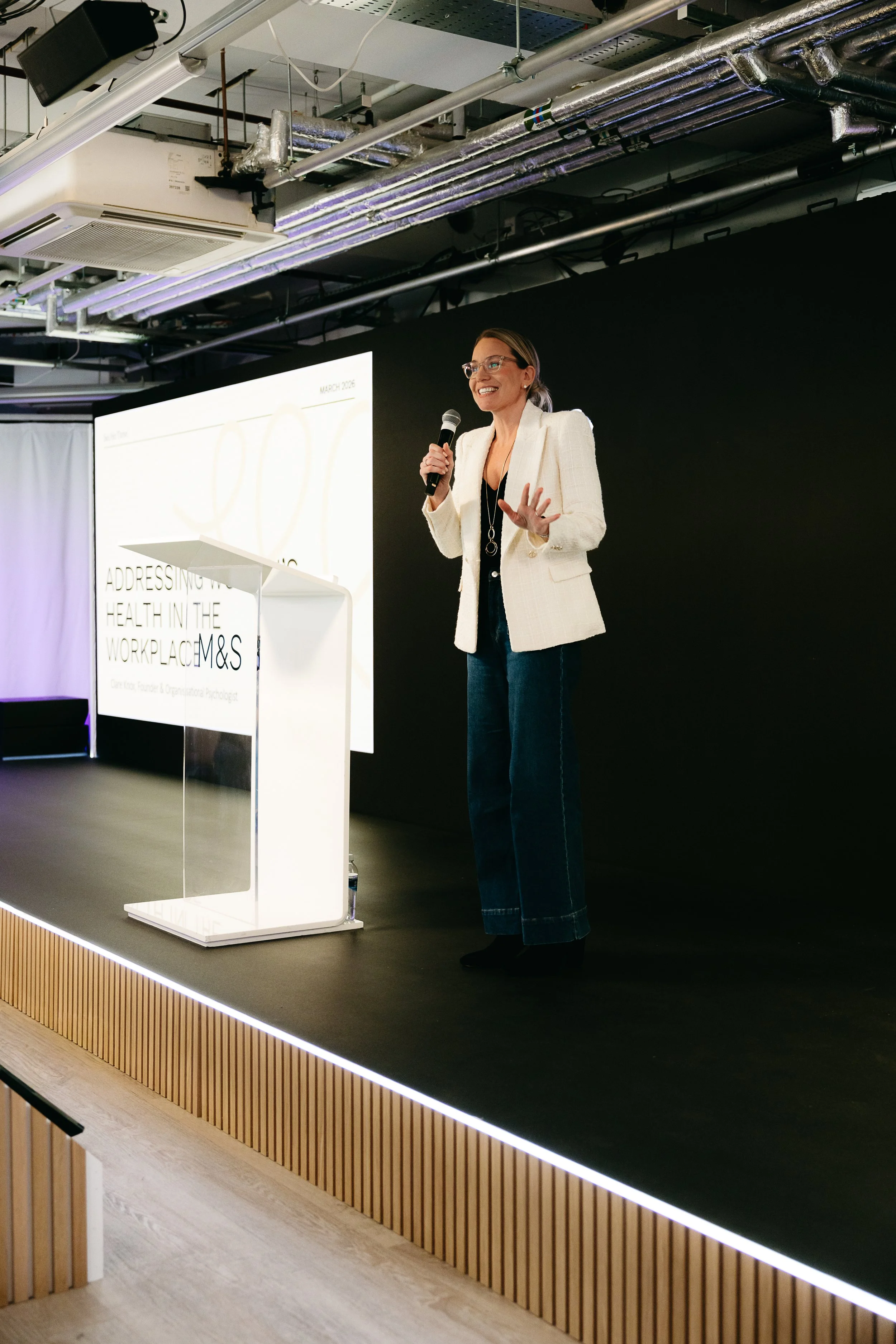 A sought-after speaker, Clare delivers thought-provoking talks at conferences, leadership summits, corporate events and industry panels. She is known for bringing warmth, credibility and a fresh perspective to conversations about women’s health, leadership and experience at work.